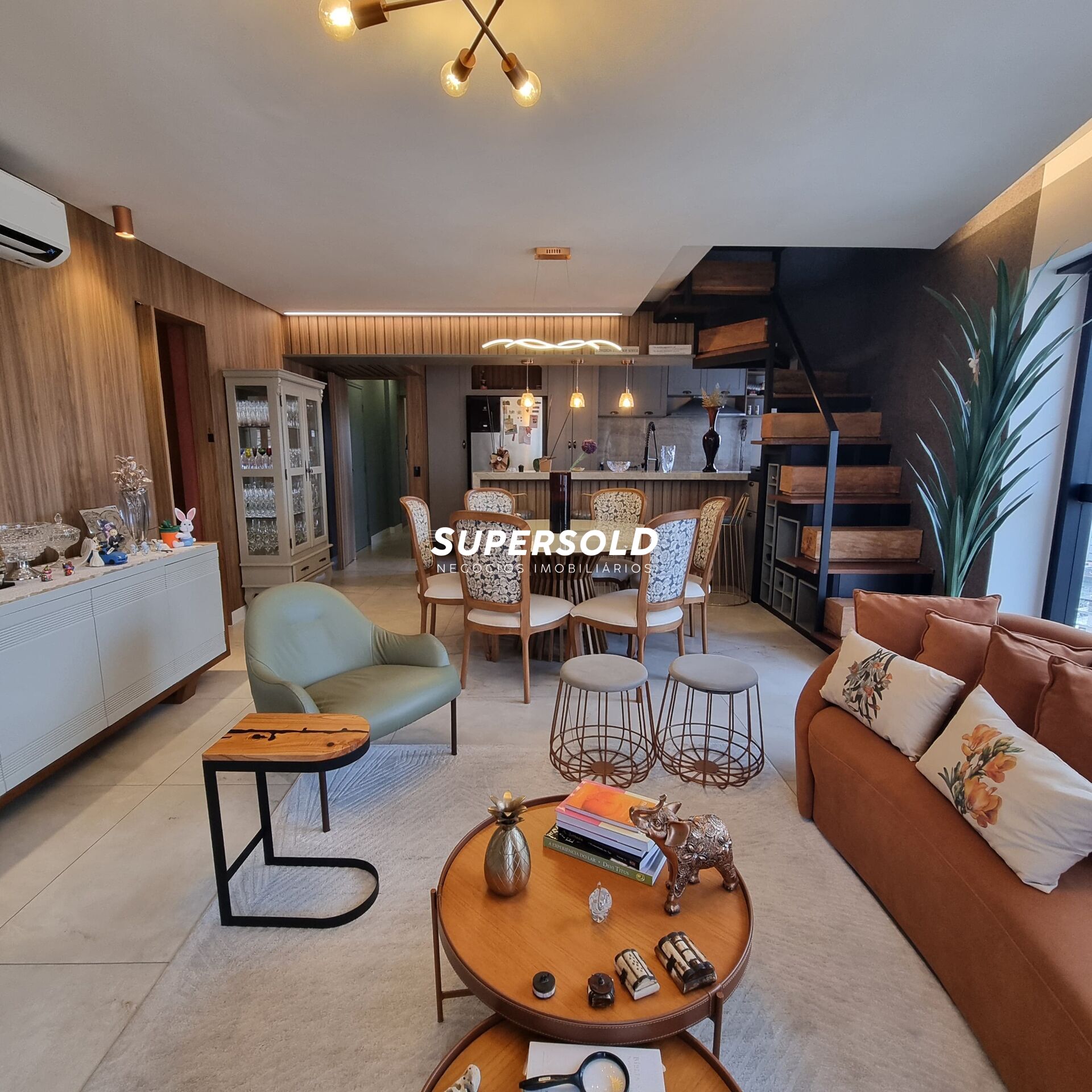 Móveis planejados em estilo industrial.