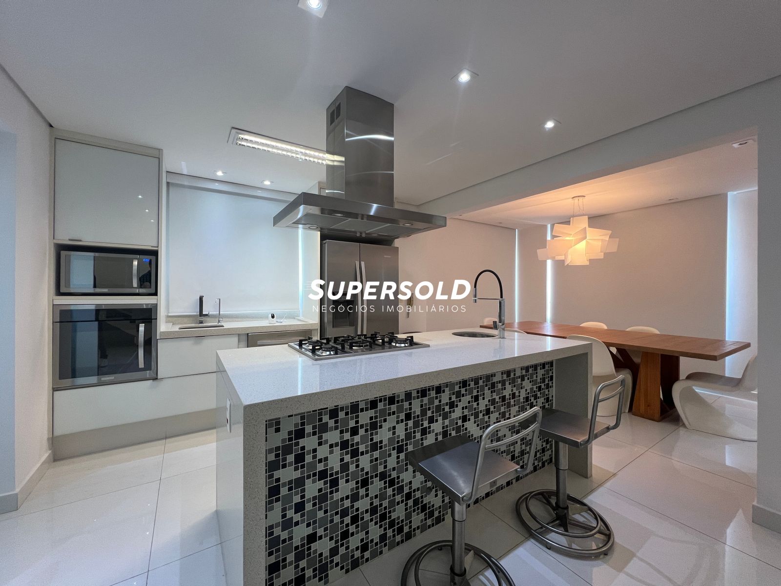Andar inferior com Cozinha, Sala de Jantar e sala de TV totalmente integrados, com lavabo e uma vista deslumbrante!