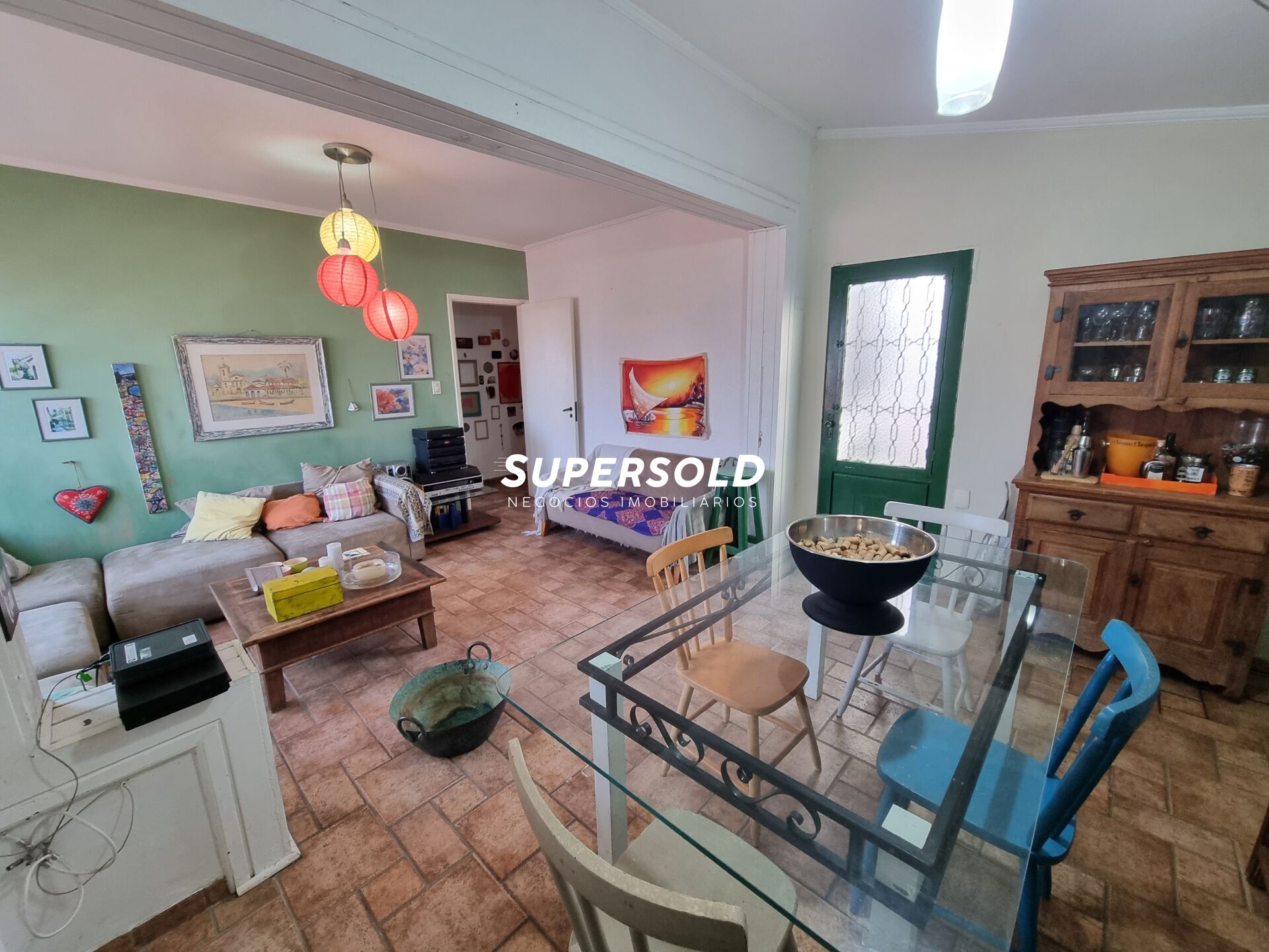 Casa térrea com sala para 2 ambientes, cozinha com copa, área de serviço, ateliê, 3 quartos sendo 1 suíte, 3 banheiros no total, quintal com churrasqueira.